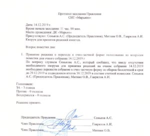 Поскольку, на Общем собрании членов СНТ 14.12.19 не было кворума, Правлением принято решение провести собрание в форме очно-заочного голосования. Дата подведения итогов голосования назначена на 30.12.19 на 12.00 в здании КПП1. Повестка дня та же. Вы можете так же до 30.12.18 зайти на КПП и проголосовать.